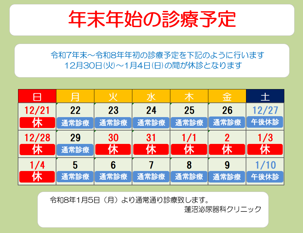 ようこそ、蓮沼泌尿器科クリニックのホームページへ。